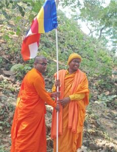 स्तूप पर फहराया गया पंचशील ध्वज