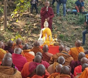 उन्होंने बहुजन हिताय सभी का मंगल हो, शांति हो की कामना की। धम्म यात्रा के संयोजक भिक्खु चन्दिमा थेरो ने अपने संबोधन के दौरान कहा कि अब भोजन का समय हो गया है उन्होंने स्तूप पर पूजन स्थल पर की गई व्यवस्था की प्रशंसा करते हुए भंते चेतसिक बोधी को इंगित करते हुए कहा कि यह इंतजाम भंते चेतसिक बोधि ने किया है वह यहां के मजबूत भंते हैं। उन्होंने बताया कि चेचक बोधि ने शाम को अपने बुद्ध विहार में भिक्षुओं के लिए बाटी चोखा की दावत की व्यवस्था की है। भिक्खु चन्दिमा थेरो ने बताया कि इनके उपासक ने यहां खीर की व्यवस्था की है। उन्होंने बताया कि शाम को एक उपासक ने स्तूप के निकट दीप प्रज्वलित करने की व्यवस्था की है। बाद में भंते चेतसिक बोधि ने भिक्खु चन्दिमा थेरो के साथ फोटो खिंचवाने के लिए डॉक्टर नवल किशोर व डा आलोक शाक्य को आवाज़ लगाई उसी के बाद फोटो सेशन का कार्यक्रम हुआ।