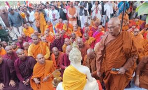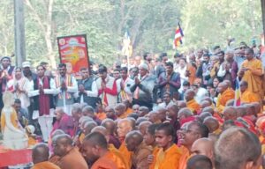 फर्रुखाबाद।(एफबीडी न्यूज़) भिक्खु चन्दिमा थेरो के नेतृत्व में सारनाथ से संकिसा पहुंची भिक्खु महासंघ की विशाल धम्म यात्रा का धम्मालोको बुद्ध विहार में समापन हुआ। धम्मालोको बुद्ध विहार सेवा ट्रस्ट के अध्यक्ष कर्मवीर शाक्य, प्रबंधक राहुल कुशवाहा एडवोकेट,उप प्रबंधक रघुवीर शाक्य, वरिष्ठ ट्रस्टी सरदार सिंह शाक्य, ट्रस्टी अशोक मौर्य, मीडिया प्रभारी आनंद भान शाक्य, प्रधान लहौरे शाक्य, भंते धम्म कीर्ति आदि भिक्षुओं एवं बौद्ध अनुयायियों फूल भेंट कर एवं पुष्प वर्षा करके जोरदारी से भिक्खु चन्दिमा थेरो का स्वागत अभिनंदन किया। यहां से धम्म यात्रा संस्था स्तूप के लिए रवाना हुई, रास्ते में महासमता बुद्ध विहार एवं पुस्तकालय प्रभारी भंते चेतसिक बोधि,भंते नागसेन आदि ने भिक्खु चन्दिमा थेरो का स्वागत किया।