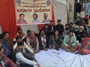 बैनर पर लिखा गया की मानक बताओ रोड बना ओ।मालूम हो धरने पर मायूस दिख रहे व्यापारी नेता सौरभ शुक्ला जिला उद्योग व्यापार मंडल के अध्यक्ष सदानंद शुक्ला की कमेटी के मीडिया प्रभारी है। मीडिया प्रभारी के नाम पर नेता गीरी करने वाले सौरभ शुक्ला ने कभी भी अपने दायित्व का पालन नहीं किया। धरना स्थल पर जिलाध्यक्ष सदानंद शुक्ला व उनकी कमेटी के अन्य पदाधिकारी धरने पर नहीं पहुंचे। जबकि धरना स्थल के चंद्र कदम दूर ही जिला अध्यक्ष सदानंद शुक्ला का प्रतिष्ठान है। पूर्व एमएलसी एवं पूर्व पालिका अध्यक्ष मनोज अग्रवाल की बीती रात बैठक में सदानंद शुक्ला एवं फेडरेशन व्यापार मंडल के जिलाध्यक्ष मनोज मिश्रा आदि व्यापारी शामिल हुए थे।