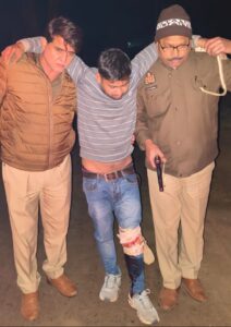 फर्रुखाबाद। (एफबीडी न्यूज़) कमालगंज थाना पुलिस की मुठभेड़ में शातिर अपराधी इनामी अपराधी राज किशोर घायल हो गया। कमालगंज थाना पुलिस की बीती रात लेन गांव नगला खेमरेगाई के तिराहे के निकट संदिग्ध व्यक्ति से सामना हुआ। पुलिस के रोके जाने जाने पर उस व्यक्ति ने पुलिस के ऊपर फायर कर दिया। पुलिस की जवाबी फायरिंग में बाएं पैर में गोली लगने से शातिर अपराधी घायल हो गया। पूछे जाने पर पुलिस को पता चला कि थाना कमालगंज के ग्राम बलीपुर निवासी राजकिशोर लोधी पुत्र तेज सिंह गोली से घायल हुआ है। उसके पास से 315 बोर तमंचा कारतूस व खोखा बरामद किए गए।