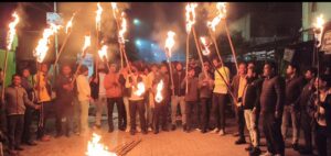 फर्रुखाबाद। (एफबीडी न्यूज़) उत्तर प्रदेश युवा व्यापार मंडल के उपाध्यक्ष अंकुर श्रीवास्तव को बिना अनुमति शहर में पुलिस के खिलाफ जुलूस निकालना काफी महंगा पड़ गया है। थाना मऊ दरवाजा के वरिष्ठ उप निरीक्षक वीरेंद्र सिंह ने अंकुर श्रीवास्तव सहित 15 व्यापारियों के विरुद्ध नामजद व 5-7 अज्ञात व्यक्तियों के विरुद्ध केस दर्ज कराया है। बीते दिन दर्ज कराई रिपोर्ट में वीरेंद्र सिंह ने कहा है कि आज 1 फरवरी को समय करीब 19 बजे 1. अंकुर श्रीवास्तव निवासी कोतवाली फर्रुखाबाद, 2. राजेन्द्र सिहं चौहान पुत्र धर्मपाल निवासी नगला बजीर खारबन्दी थाना मऊदरवाजा 3. अंजुम उर्फ अंजु निवासी मोहल्ला तलैया साहबजादगान थाना मऊदरवाजा, 4. रोहन कश्यप निवासी भीकमपुरा थाना मऊदरवाजा, गोविन्द बाथम निवासी नौलक्खा थाना मऊदरवाजा, 6. मुनब्बर 7. अनमोल निवासी हथियापुर थाना मऊदरवाजा, 8. जय कश्यप निवासी बैजनाथ स्ट्रीट थाना मऊदरवाजा, 9. सचिन 10. अजीम निवासी बीबीगंज,11- करीम निवासी भीकमपुरा 12. माजिद अली निवासी अस्तबल तराई, 13. कमल निवासी बहादुरगंज तराई।