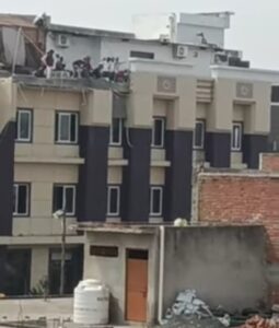 होटल गिरने के लिए लगाए गए बुलडोजर