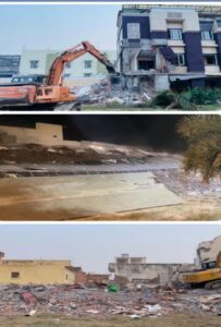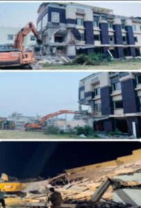 फर्रुखाबाद। (एफबीडी न्यूज) आखिरकार जिला प्रशासन ने युद्ध स्तरीय कार्यवाही कर दुर्दांत माफिया अनुपम दुवे के श्रीगुरुशरणम पैलेस को ध्वस्त करके ही दम लिया। रात करीब 11 बजे श्रीगुरुशरणम पैलेस को जमीदोज कर दिये जाने पर जाने पर प्रशासनिक अधिकारियों ने राहत की सांस ली।