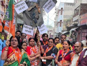 नए भारत में लड़कियां लड़कों के बराबर कंधे से कंधा मिलाकर खड़ी हुई है हर क्षेत्र में लड़कियां और महिलाएं नए-नए मुकाम हासिल कर रही हैं। लेकिन बिहार के मुख्यमंत्री नीतीश कुमार द्वारा दिए गए बयान से देश भर की महिलाएं आहत हुई हैं। इस अवसर पर नगर पश्चिम मंडल अध्यक्ष विकास पांडे पूर्व महिला मोर्चा जिला अध्यक्ष बबीता पाठक रामकिशन दीक्षित संजीव वर्मा पूर्व सभासद आदेश गुप्ता असलम कुरैशी राजवती बाथम जिला मीडिया प्रभारी शिवांग रस्तोगी बबलू शुक्ला आदि लोग मौजूद रहे।